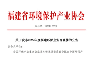 2022年度福建环保企业百强榜发布,bw必威西汉姆联官方网站位列第三