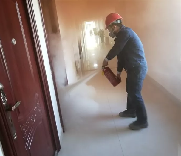 火灾现场得到控制,人员安全疏散后,安环部人员携带便携式气体报警仪对宿舍周边进行有毒、有害气体检测,对污水流向进行查看,确保有毒、有害气体在正常接触范围内,污水进入事故池。