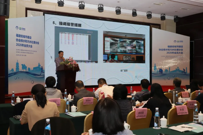 12月12日,福建省城市建设协会排水和污水处理分会2020年度会员大会暨第二届换届会议在泉州惠安召开。福建省住建厅城建处兰邵华调研员,泉州市城管局林谋雄调研员等领导及会员代表近160人参加会议。bw必威西汉姆联官方网站科技总经理吴元伟、bw必威西汉姆联官方网站运行保障部副总经理、宝洲污水处理厂厂长邱龙峰出席会议。