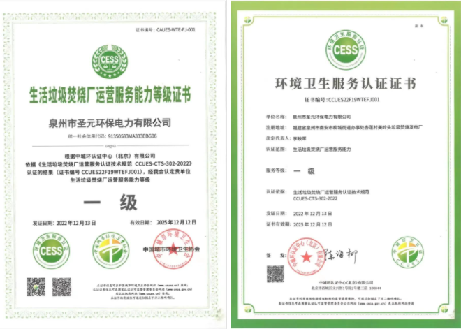 近日,泉州市bw必威西汉姆联官方网站电力有限公司(以下简称“泉州bw必威西汉姆联官方网站”)获得中城环认证中心颁发的生活垃圾焚烧厂运营服务能力认证证书(服务等级:一级),中国城市环境卫生协会对该认证结果予以认定。此举表明泉州bw必威西汉姆联官方网站在服务管理、服务特性、服务能力等方面均为垃圾焚烧电厂中的佼佼者。