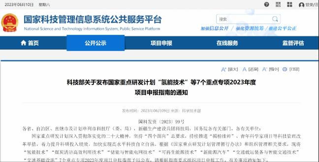 政策 | 科技部发布国家重点研发计划“氢能技术”2023年度项目申报指南