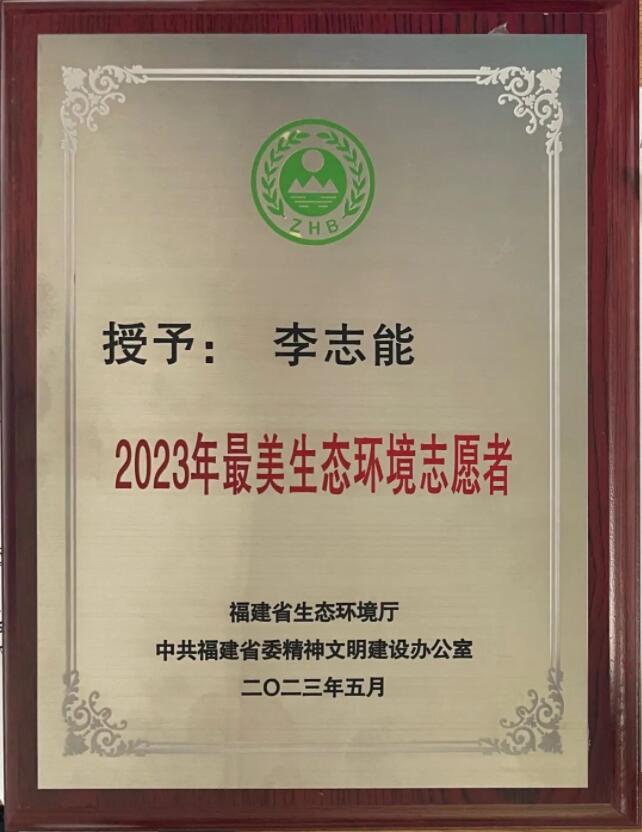 日前,福建省生态环境厅、中共福建省委精神文明建设办公室发出通知,公布了2023年“‘美丽中国,我是行动者’提升公民生态文明意识行动计划”福建省先进典型名单。其中,莆田bw必威西汉姆联官方网站宣导中心李志能入选2023年福建省最美生态环境志愿者。