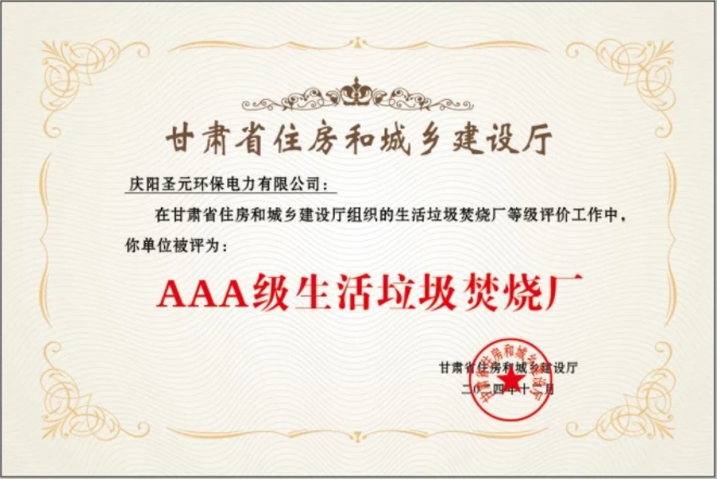 近日,庆阳bw必威西汉姆联官方网站顺利通过甘肃省住房和城乡建设厅组织的全省生活垃圾焚烧厂等级评价,获评甘肃省AAA级生活垃圾焚烧厂。