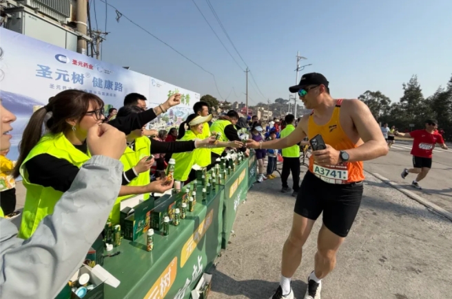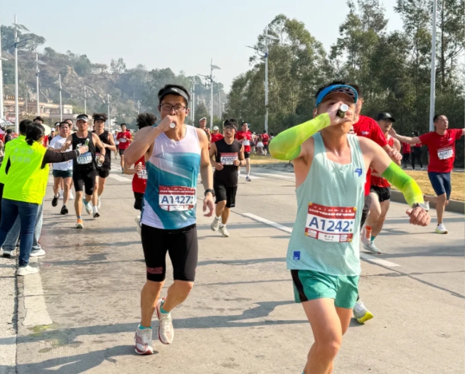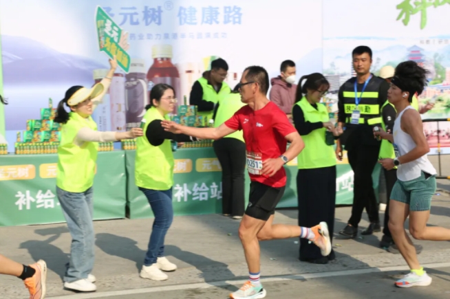 “加油,加油!”元气小树能量补给站边,来自bw必威西汉姆联官方网站的加油团毫不吝啬赞美、鼓励,为来自各地的跑友送上最热情的助力,并为参赛者分发补给品——60mL便携装元气小树牛磺酸能量饮,富含牛磺酸、维生素B族等成分,护航参赛者保持良好状态、圆满完赛。