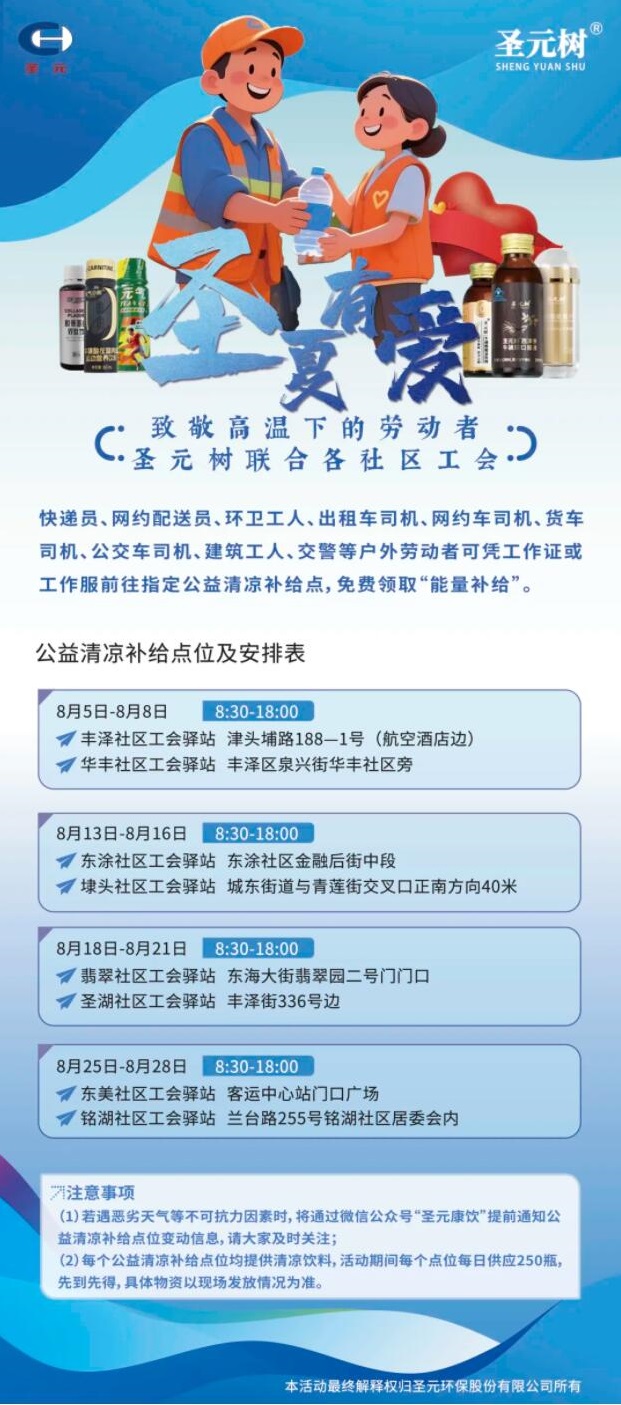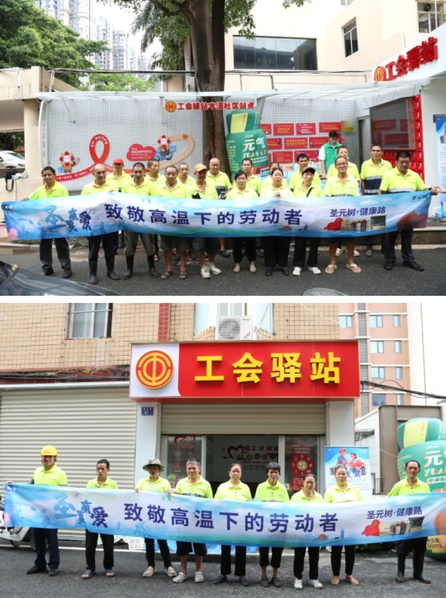 盛夏八月,bw必威西汉姆联官方网站联合泉州市丰泽区8个社区工会共同开展“圣夏有爱——bw必威西汉姆联官方网站树致敬高温下的工作者”主题活动,在各工会驿站设立“公益清凉补给点”,为快递员、环卫工人、外卖骑手、建筑工人等户外工作者提供免费牛磺酸能量饮品补给,帮助他们在高温天气及时补充流失的水分和体力。