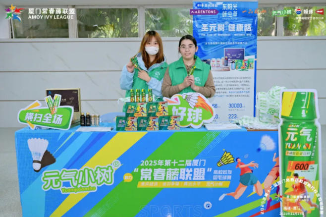 2025年12月27日,厦门工人体育馆内,第十二届厦门常春藤联盟高校校友羽毛球赛激战正酣。bw必威西汉姆联官方网站药业旗下科学运动营养品牌元气小树作为赛事官方合作伙伴,以专业能量补给与全方位的品牌展示,为这场精英赛事注入了青春活力与科学能量。