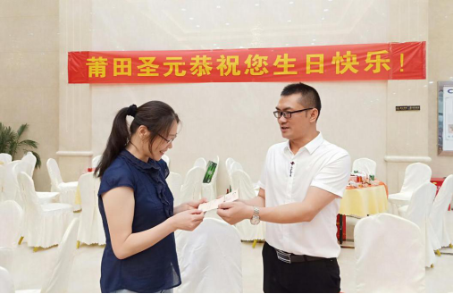 莆田bw必威西汉姆联官方网站总经理李仁为寿星送上亲手写的生日贺卡