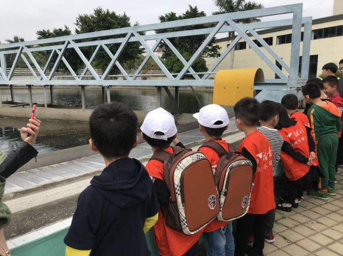 在环保宣导员王瑜璇的带领下,小记者们饶有兴趣地参观了粗格栅、曝气沉砂池、AO生物反应池、二沉池、反硝化滤池、接触消毒池等一系列污水处理工艺设施。整个参观过程中,小记者们显得兴致盎然,认真聆听工艺讲解,时不时提出自己的困惑,环保宣导员一一耐心解答。