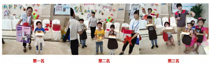 在缔造美味蛋糕的同时,小朋友们充分感受了烘焙的魅力,享受了美好时光。经过一个小时的角逐,最终评选出第一名1名、第二名2名、第三名3名,并领到心仪的奖品。
