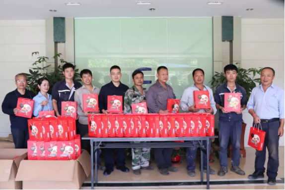 此外,公司也为物业承包单位——泉州市圣明物业公司的每一位员工发放月饼,感谢圣明物业维护厂区卫生,让厂区拥有美丽环境,借此中秋佳节到来之际,祝愿他们中秋节快乐!月圆人团圆事事圆满!